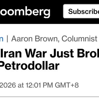【特朗普对伊朗开战,亲手拆毁美国石油美元根基?】彭博社6日专栏文章观点认为,Trump对伊朗的战争正在反噬美国,破坏了赋予美帝“石油美元体系(the petrodollar system)”。